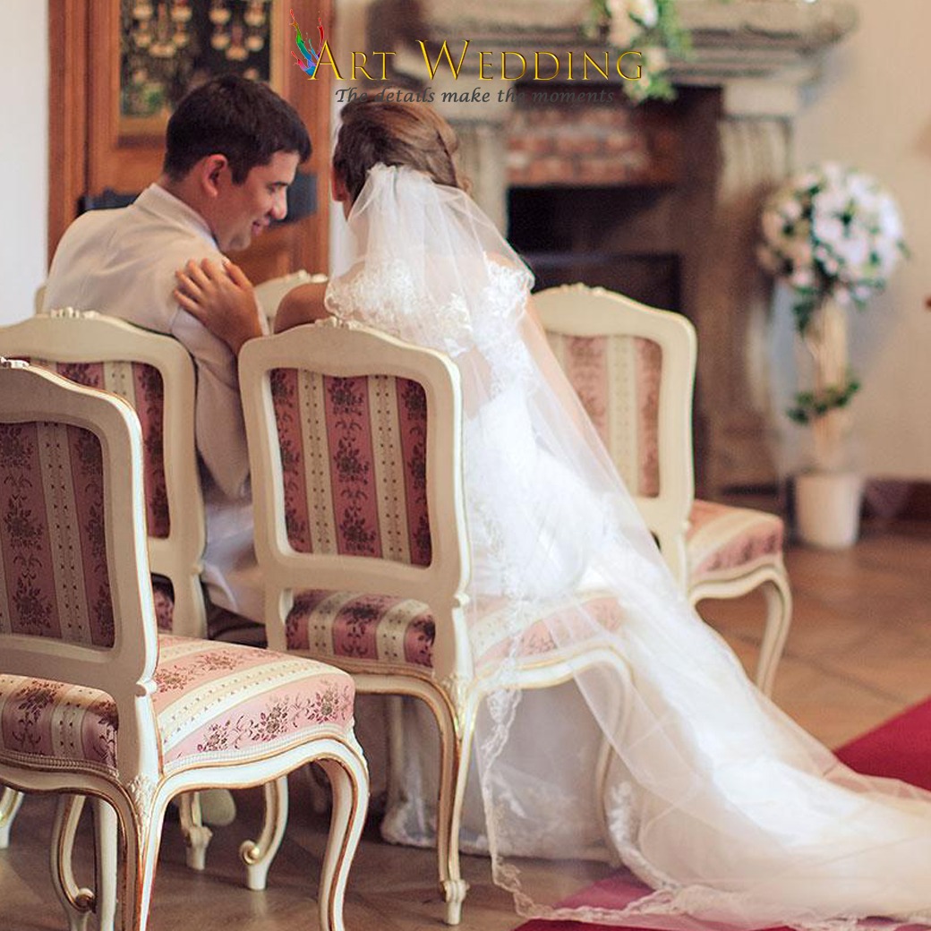 Свадьба в крепости Локет станет для вас незабываемым событием: молодоженов у ворот замка встречает бургграф, и в сопровождении дружины рыцарей, провожает в зал регистрации, где проходит свадебный обряд (длится около часа). Церемония проходит в Свадебном зале, который украшен восхитительными фресками, оригинальными деревянными потолками и старинными портретами выдающихся художников прошлых веков. Вы будете покорены его средневековым колоритом и роскошной рыцарской атрибутикой, которая прекрасно сохранилась до нашего времени. Горящие свечи, бросающие отблеск на своды рыцарского зала, нежный аромат полевых цветов, ощущение счастья и бесконечная уверенность в прочном союзе двух сердец — именно о такой свадьбе мечтают счастливые молодожены.