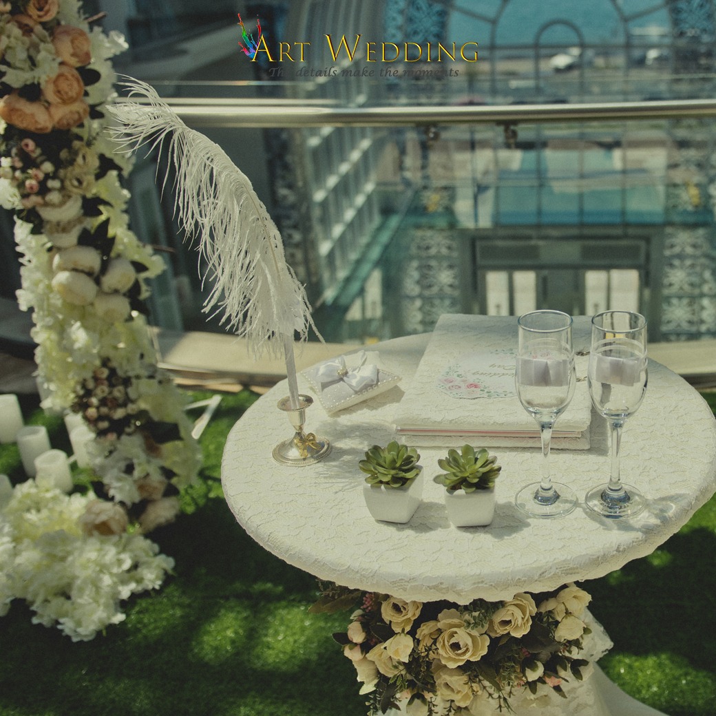| עיצוב מקום הטקס (קישוט שולחן הרישום עם אביזרים שונים עם פרחי העונה טריים וקופסה לטבעות). | √ | √ | ||
