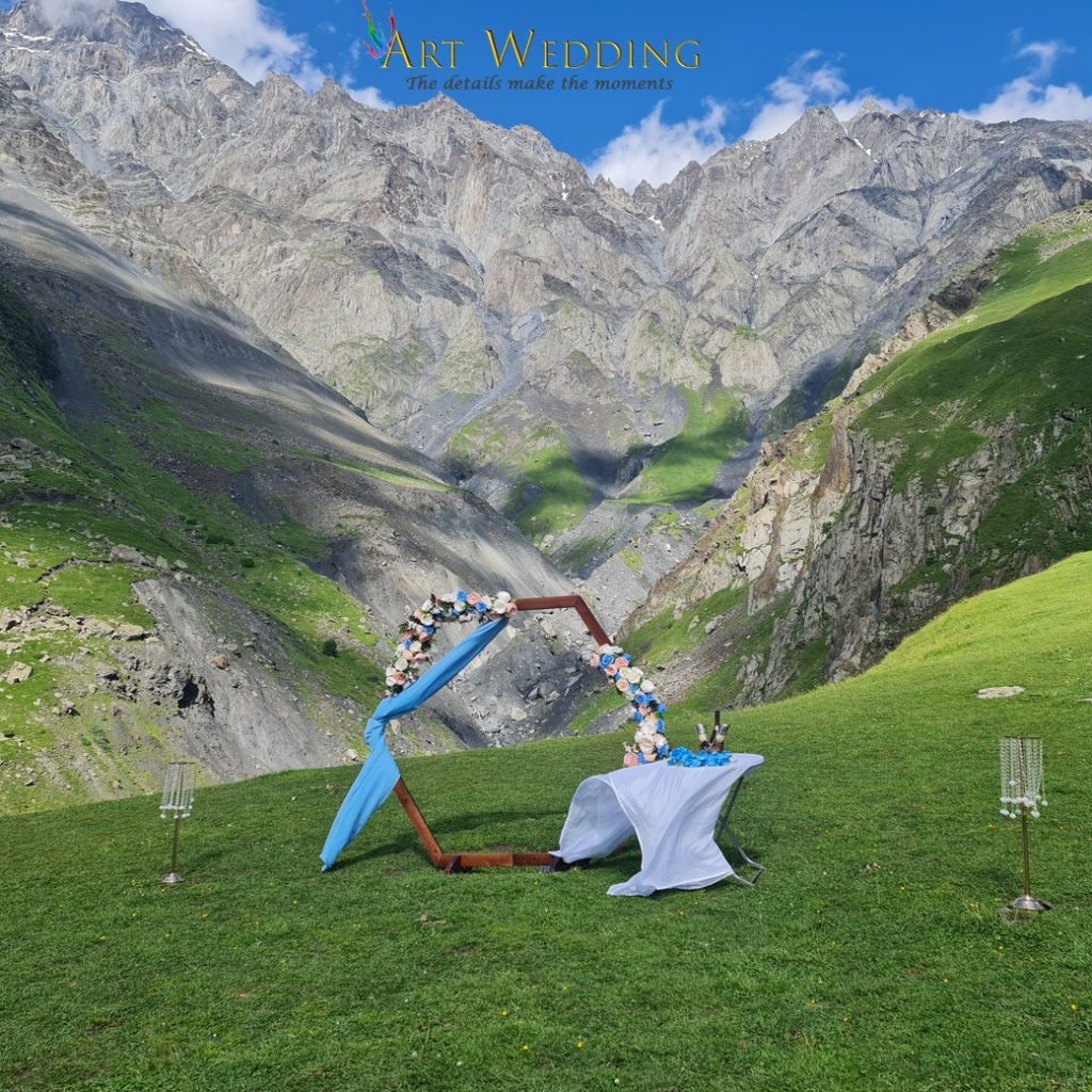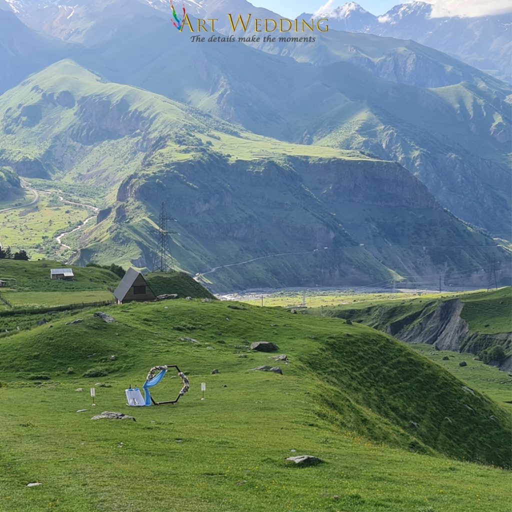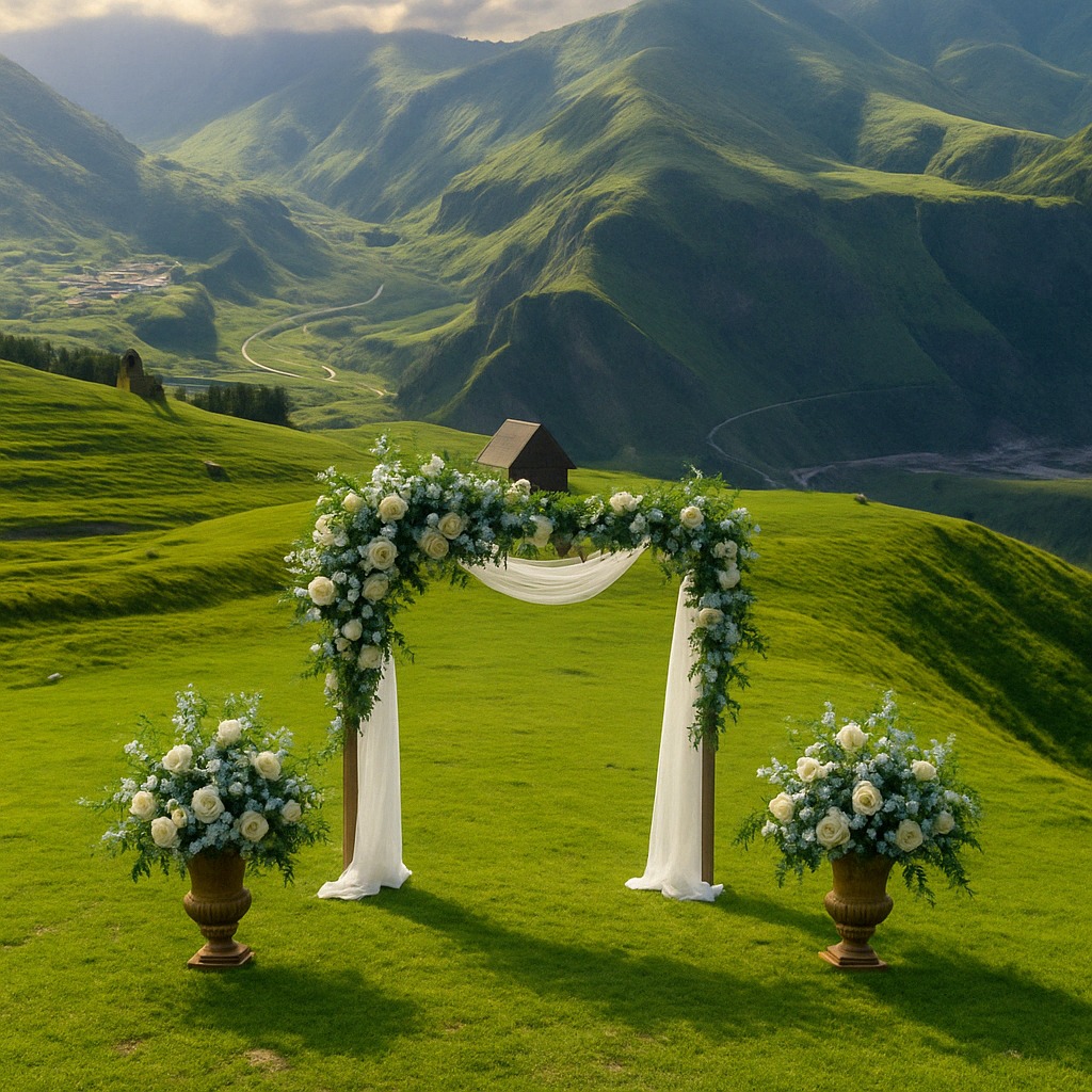 תארו לעצמכם: אתם עומדים יחד מול פסגת הקזבק האדירה, העננים עוטפים את הפסגות כמו צעיף תחרה, והרוח לוחשת נדרי אהבה. אין צורך בארמונות — הטבע עצמו הופך למזבח, והשמים מעל מברכים את האיחוד.